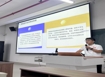 课程最后,王建权老师围绕 “安全网络:青春的健康空间” 与 “携手同行:青春与安全的约定” 展开分享,呼吁同学们文明上网、遵守网络法律法规,抵制网络暴力与违法有害信息,合理安排上网时间,让网络成为学习成长的助力而非负担。他表示,随着人工智能、虚拟现实等技术的发展,诈骗手段也在不断升级,未来需要同学们持续更新反诈知识,共同关注创新型反诈宣传方式,携手营造安全、和谐、清朗的网络环境。