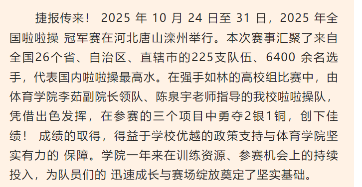 我校啦啦操队在全国冠军赛上斩获 2 银 1 铜,闪耀唐山!